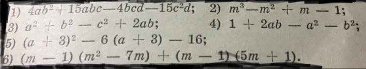 6) (m-1)(m²-7m)+(m-1)(5m+1)= (m-1)(m²-7m+5m+1)= (m-1)(m²-2m+1)= (m-1)(m-1)²= (m-1)³ или же (m-1)(m-1)(m-1).