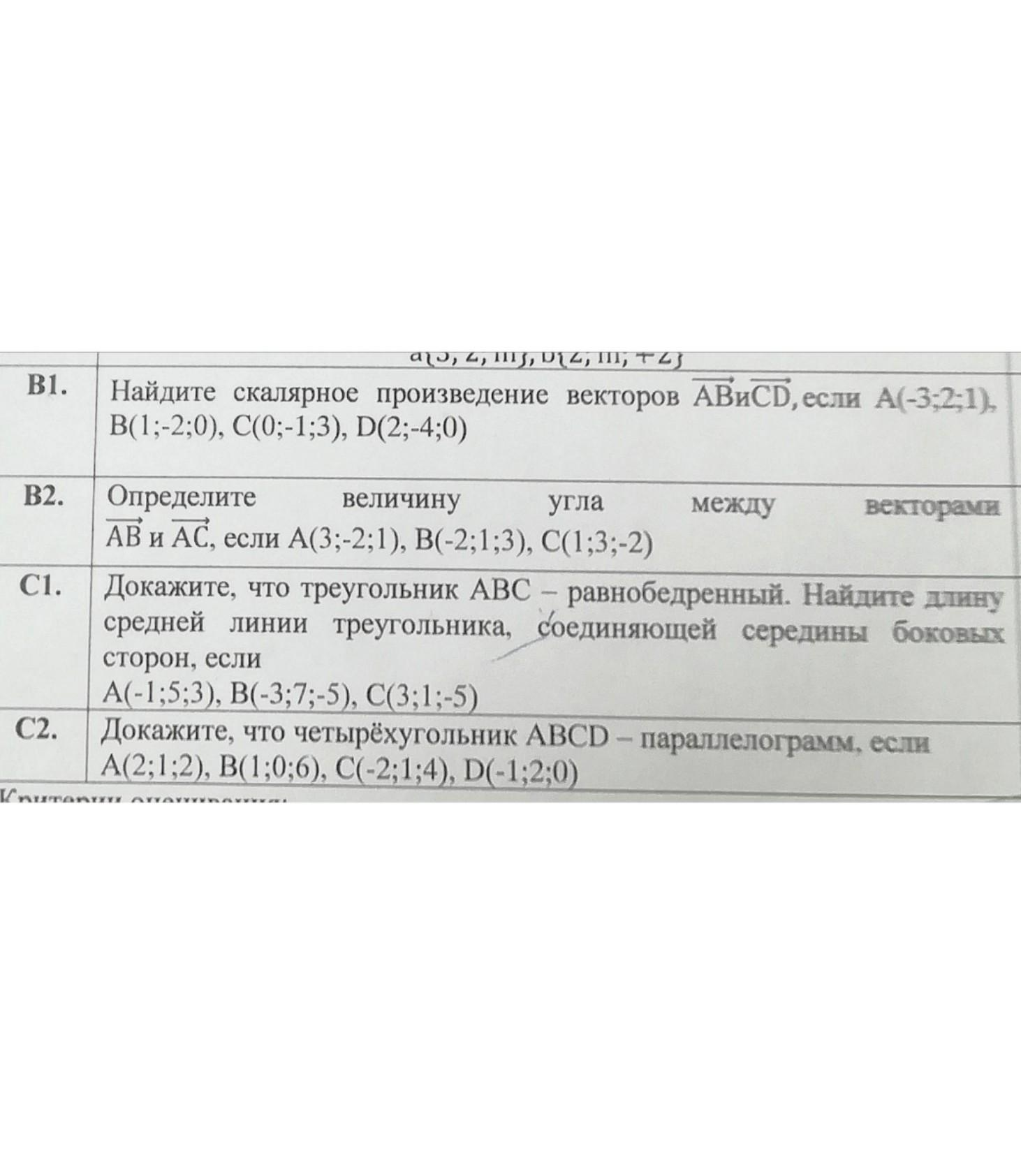 C1. AB={-2, 2, -8}, АВ=√(-2² +2²+(-8)²)= √72, BC={6, -6, 0}, BC=√(6²+(-6)²)=√72, AB=BC чтд.