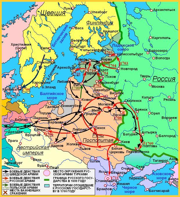 Светло-зеленым цветом - Россия до войны с Швецией. Темно-зеленым - после.