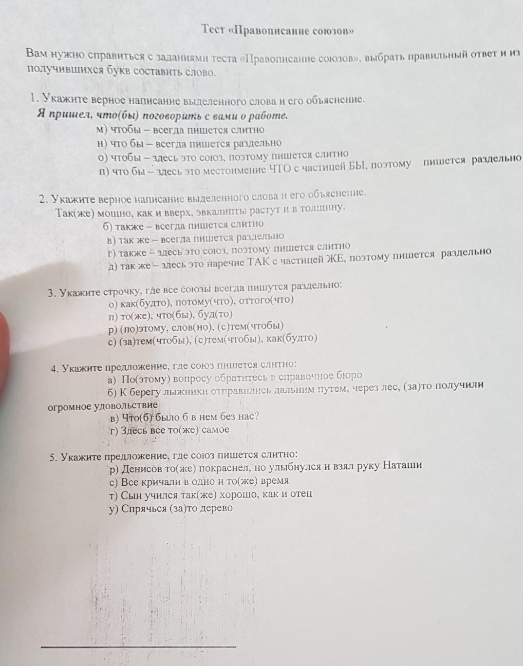 Вам нужно справиться с заданиями теста «Правописание союзов», выбрать правильный ответ и из