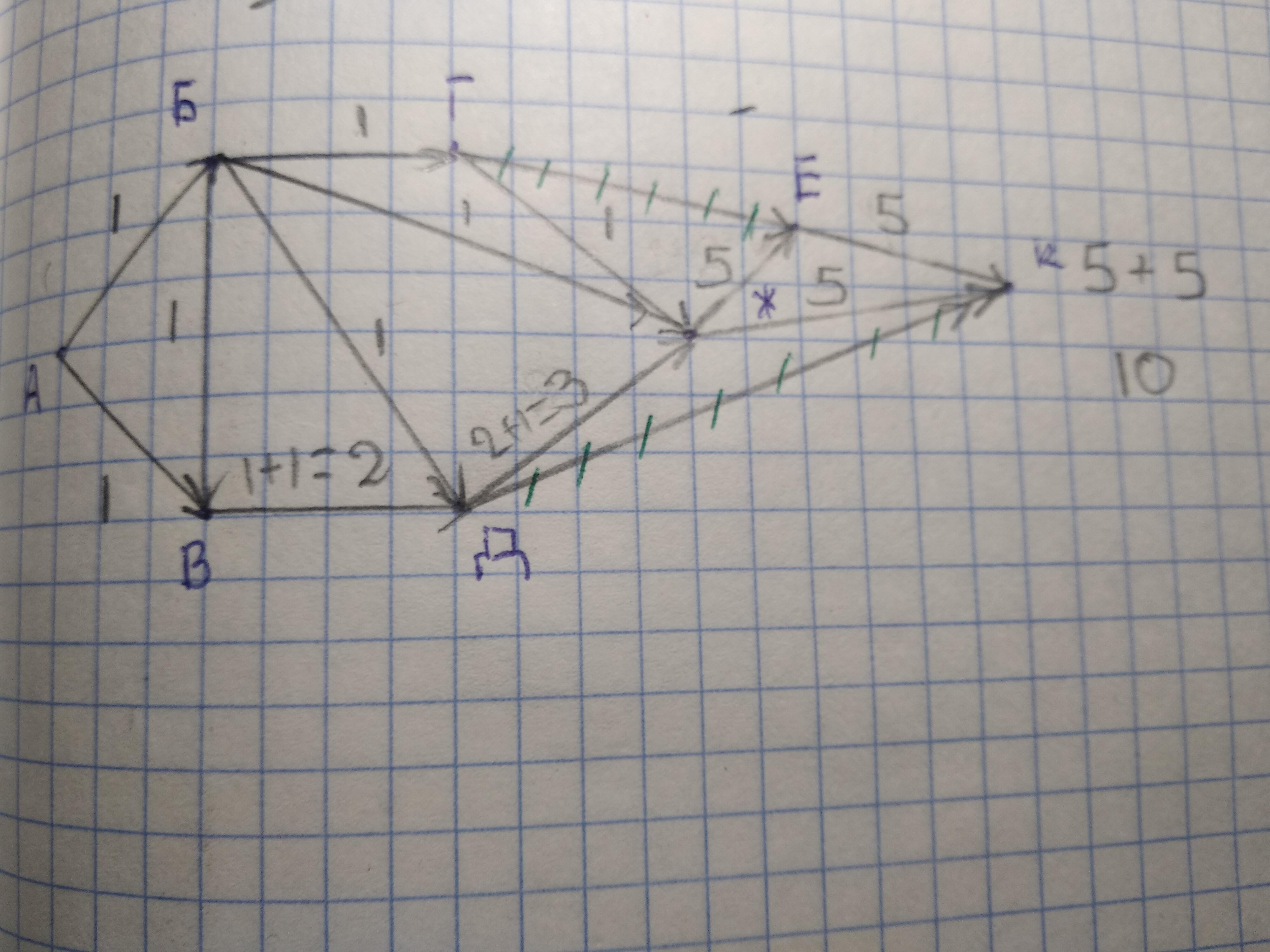 2)из пункта Б может выходить 4 дороги, а именно в пункты Г, Ж, Д, В;