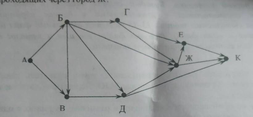 Объяснение: Если путь должен проходить через пункт Ж, то из пункта Г в пункт Е и из пункта Д в пункт К напрямую доехать нельзя.