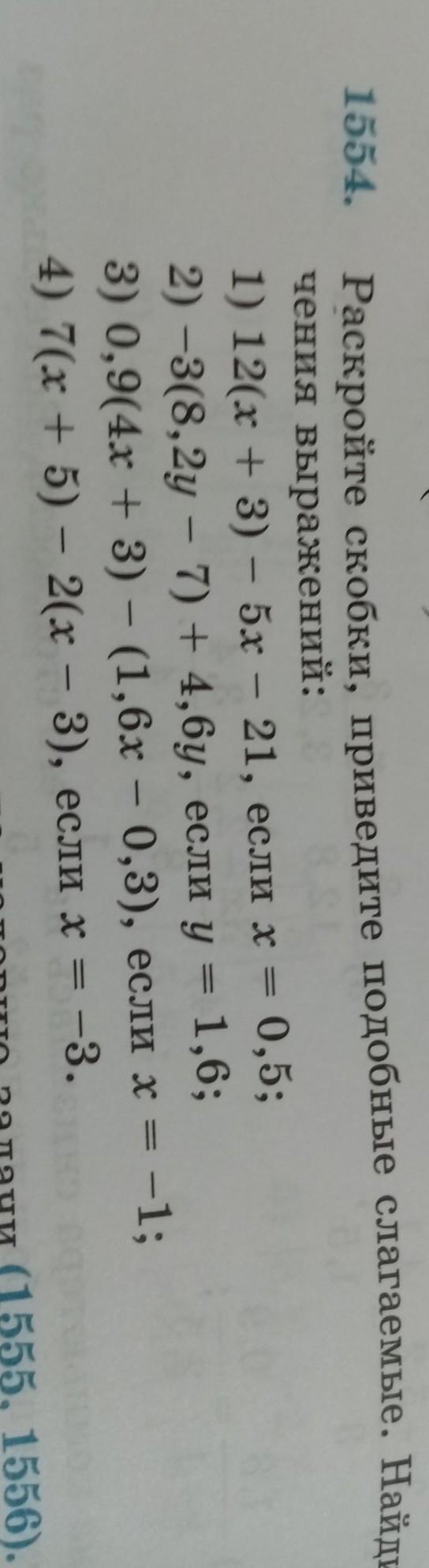 Раскройте скобки, приведите подобные слагаемые. Найдите значения выражение:номер 1554 6 класс