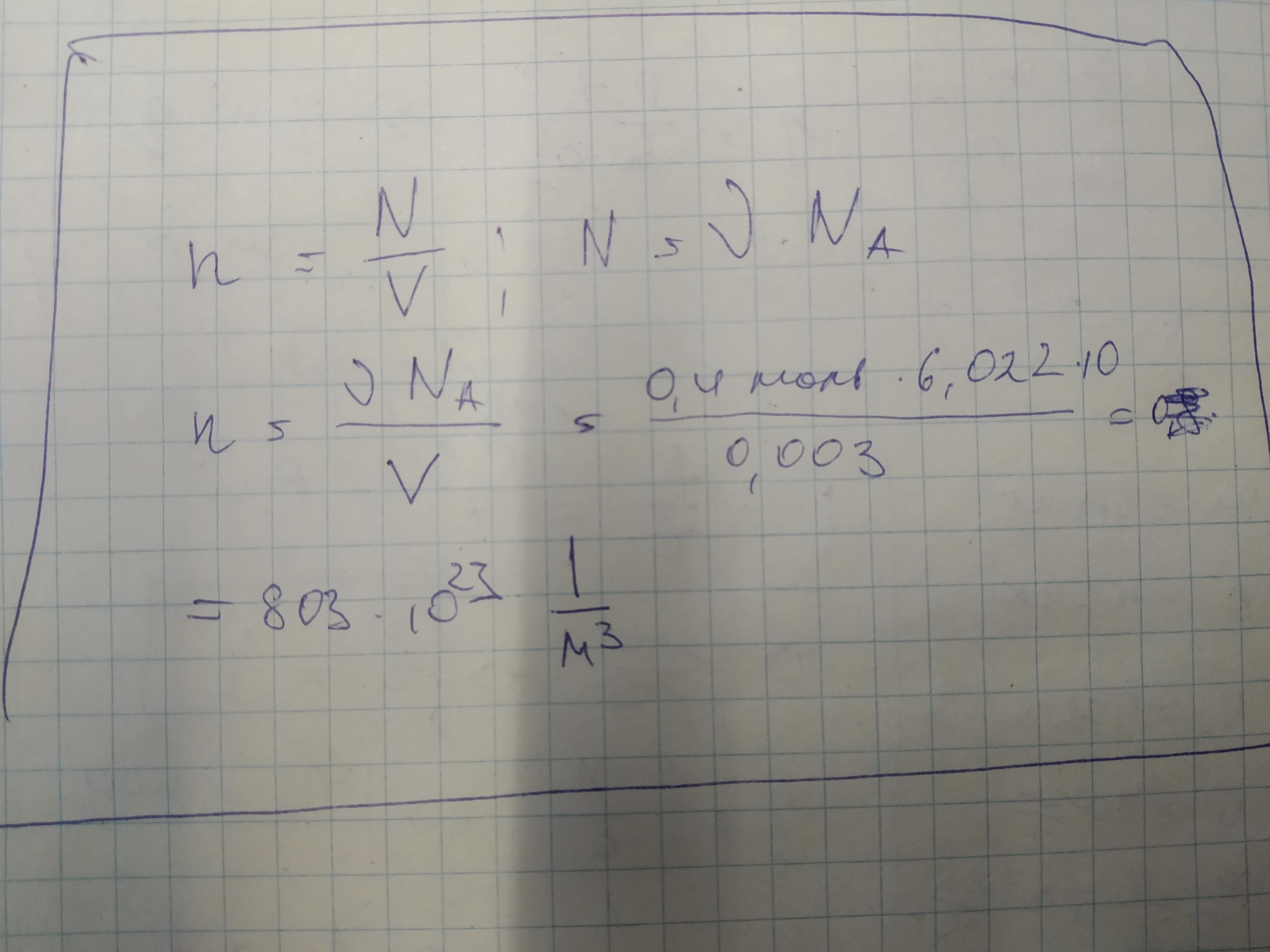42. Определить концентрацию n0 молекул кислорода, находящегося в сосуде объемом V = 3 л. Количество вещества n кислорода равно 0,4 моль