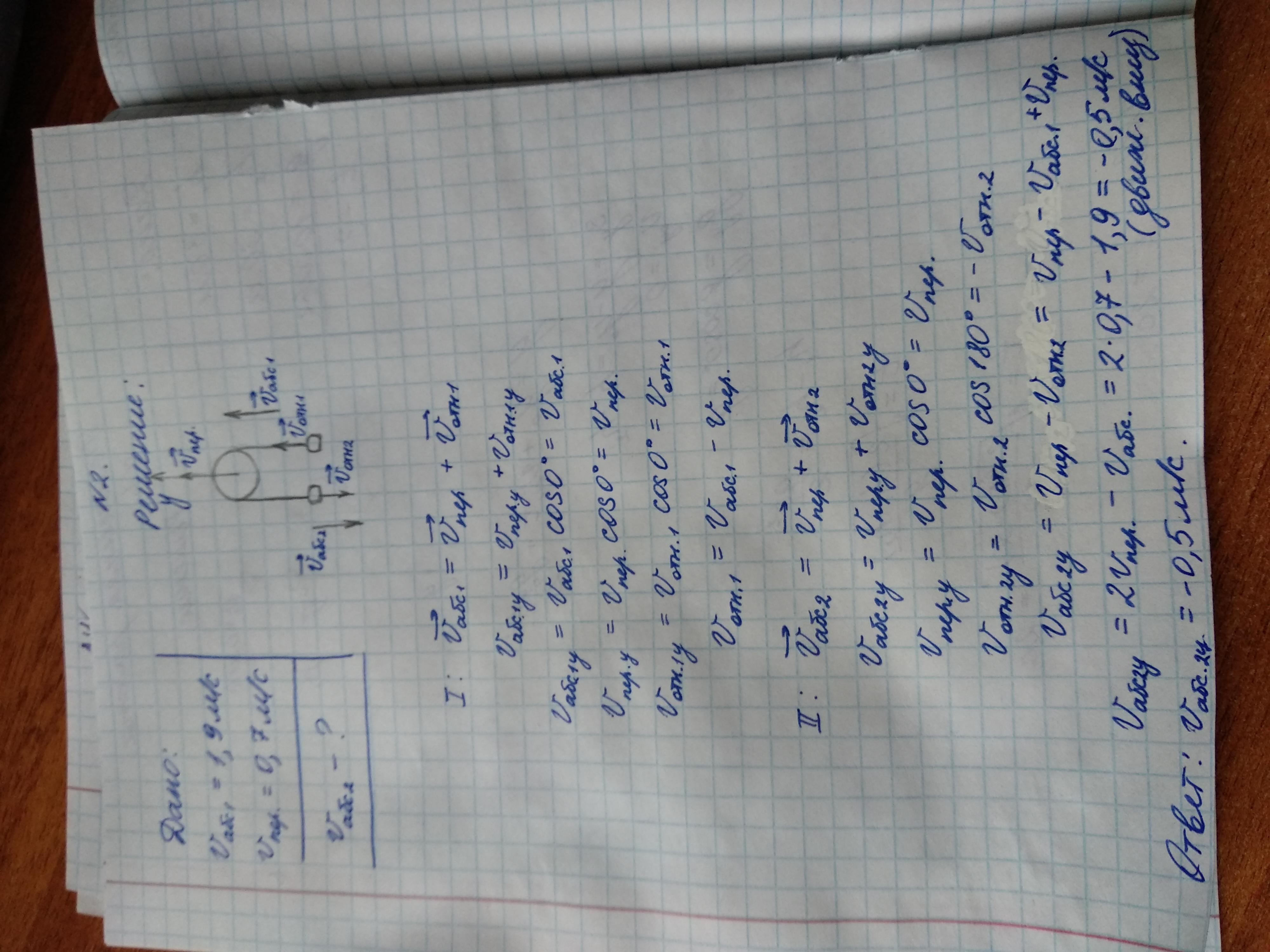через блок переброшена нерастяжимая нить с одинаковыми грузами на концах при наблюдении с земли ось блока поднимается вверх со скоростью V равно 0,7 м/с а один из грузов поднимается вверх со скоростью V равняется 1,9 м/с. Чему равна скорость второго грузчика для земного наблюдателя есль нить остаётся натянутой. Ответ выразите в м/с округлите до десятых