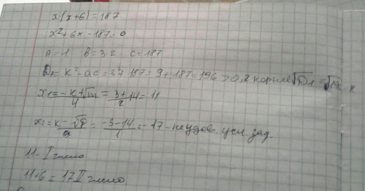 x2=(-2-12)/2=-14/2=-7 - не удовл. усл. задачи
