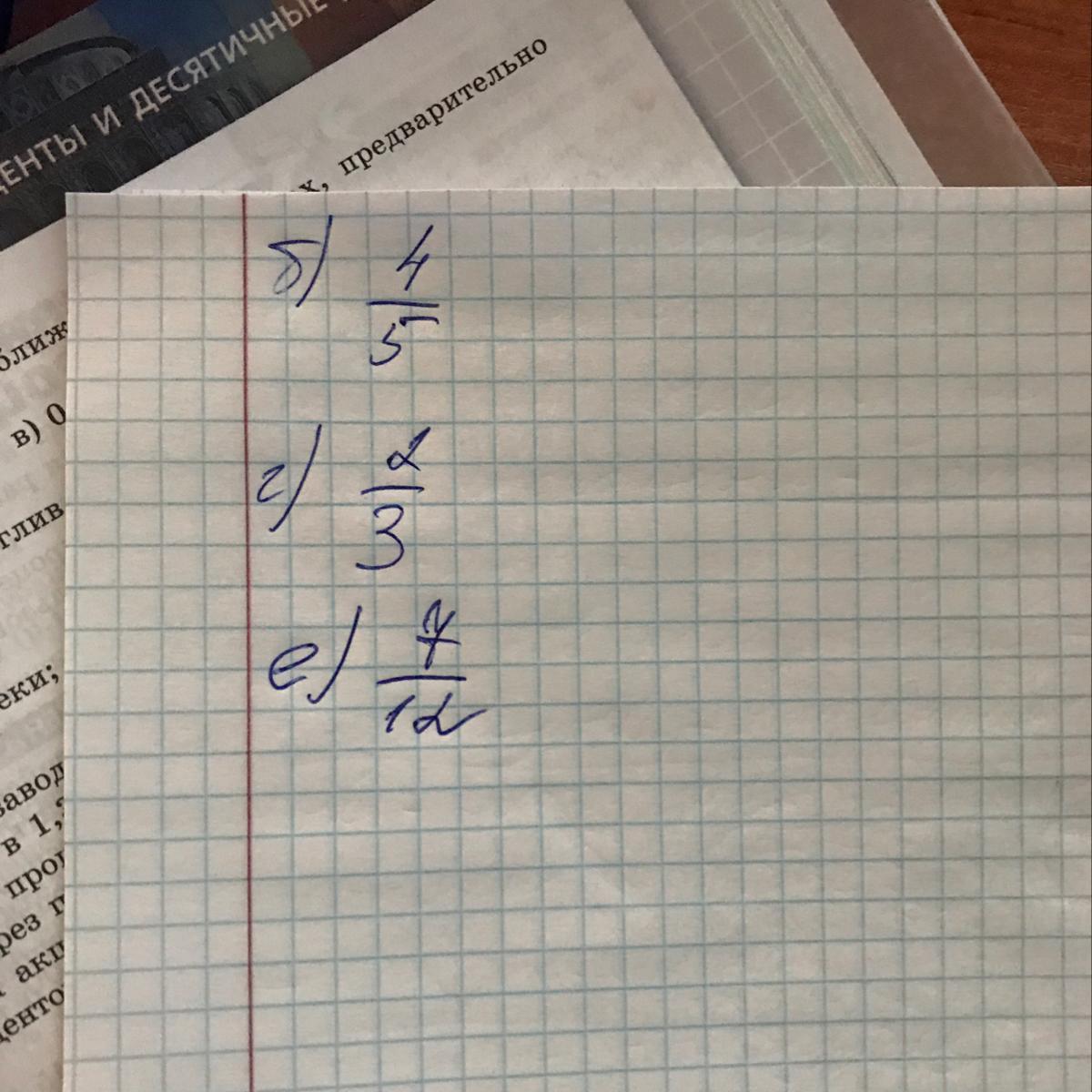 Не выполняя вычислений определите больше или меньше 50% получится, если выразить в процент дробь: б) 4/5; г) 2/3; е) 7/12