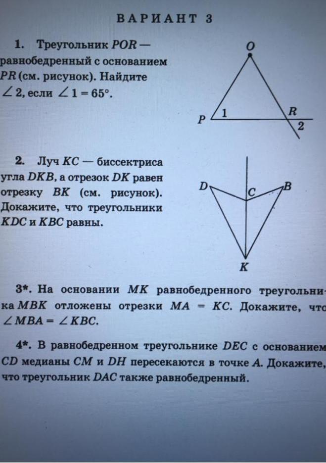 Т.к треугольник POR равнобедренный следует что углы при основании равны, значит угол 1 = углу ORP=65 градусов .