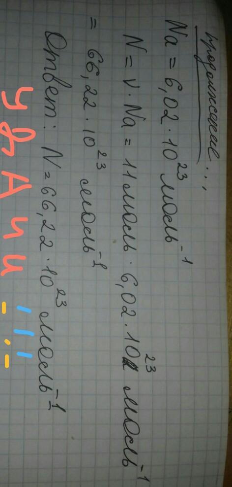 N(H2O) = n(H2O)*NA = 11 моль * 6,02*10²³ = 6,62*10²⁴