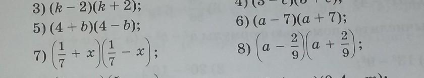7) (1/7+x)(1/7-x)=1/49-x²