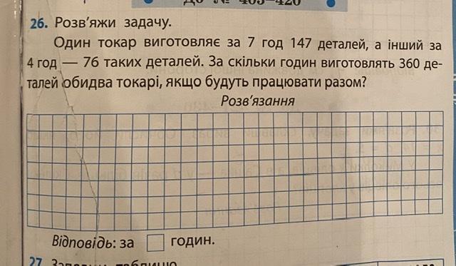 1) 147 / 7 = 21 (дет) виготовляє за годину перший токар.