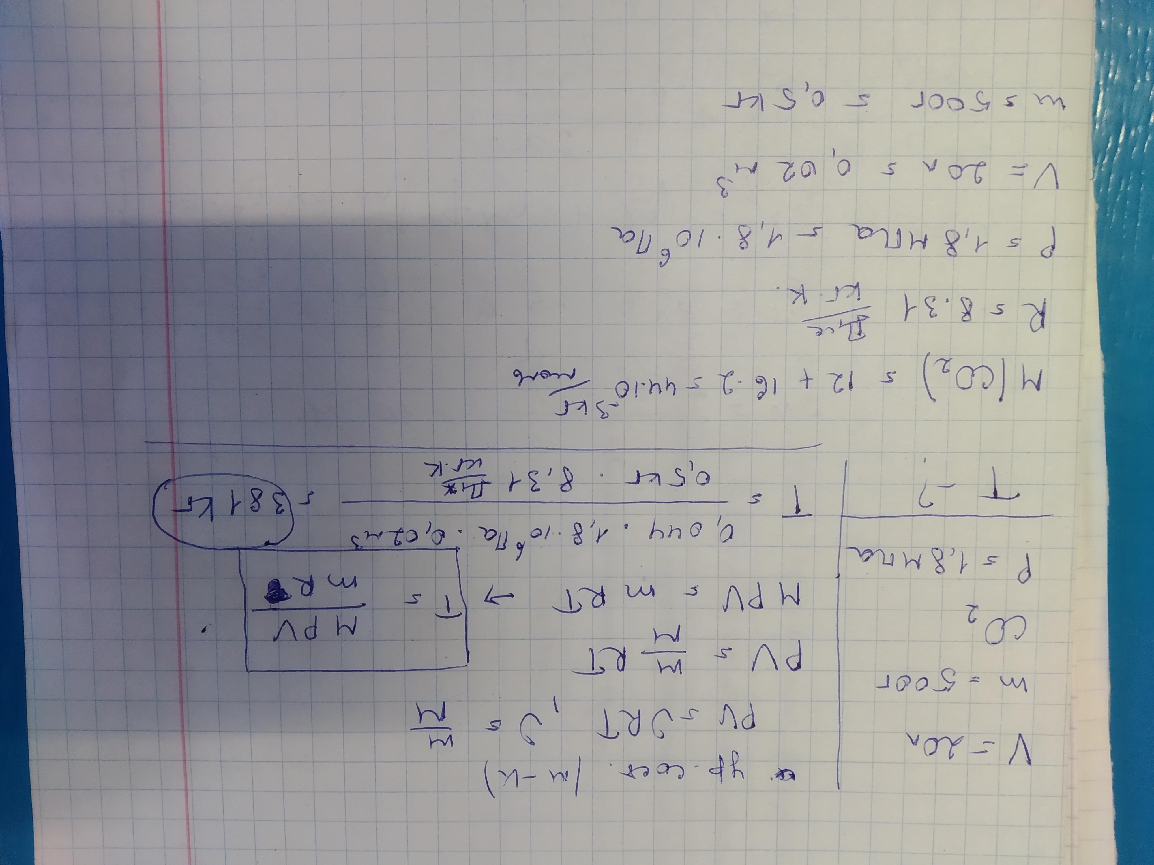 в баллоне объемом 20 л находится 500 г углекислого газа под давлением 1,8 мПа. Определите температуру газа