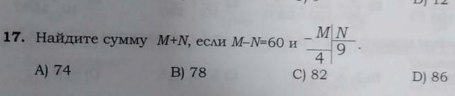 т.к. M=M, записываем равенство: 60+N=9N+4,