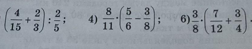 2) (4/15 + 2/3 ) : 2/5 = (4/15 + 10/15) : 2/5 = 14/15 * 5/2 = 7/3 = 2цел. 1/3