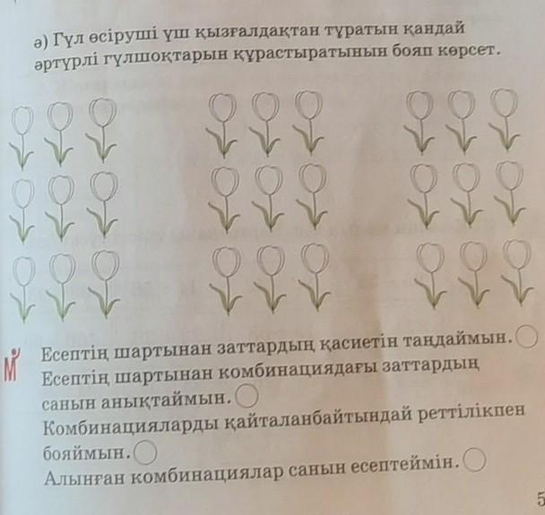 гүл өсіруші үш қызғалдақтан тұратын қандай әртүрлі гүлшоқтарын қүрастыратынын бояп көрсет