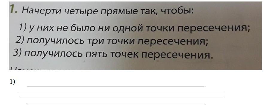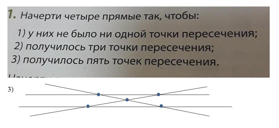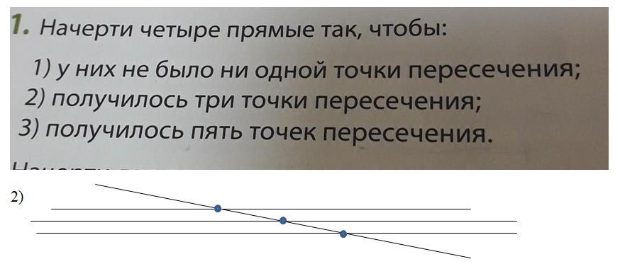 1) все 4 прямые параллельны - параллельные прямые не пересекаются!