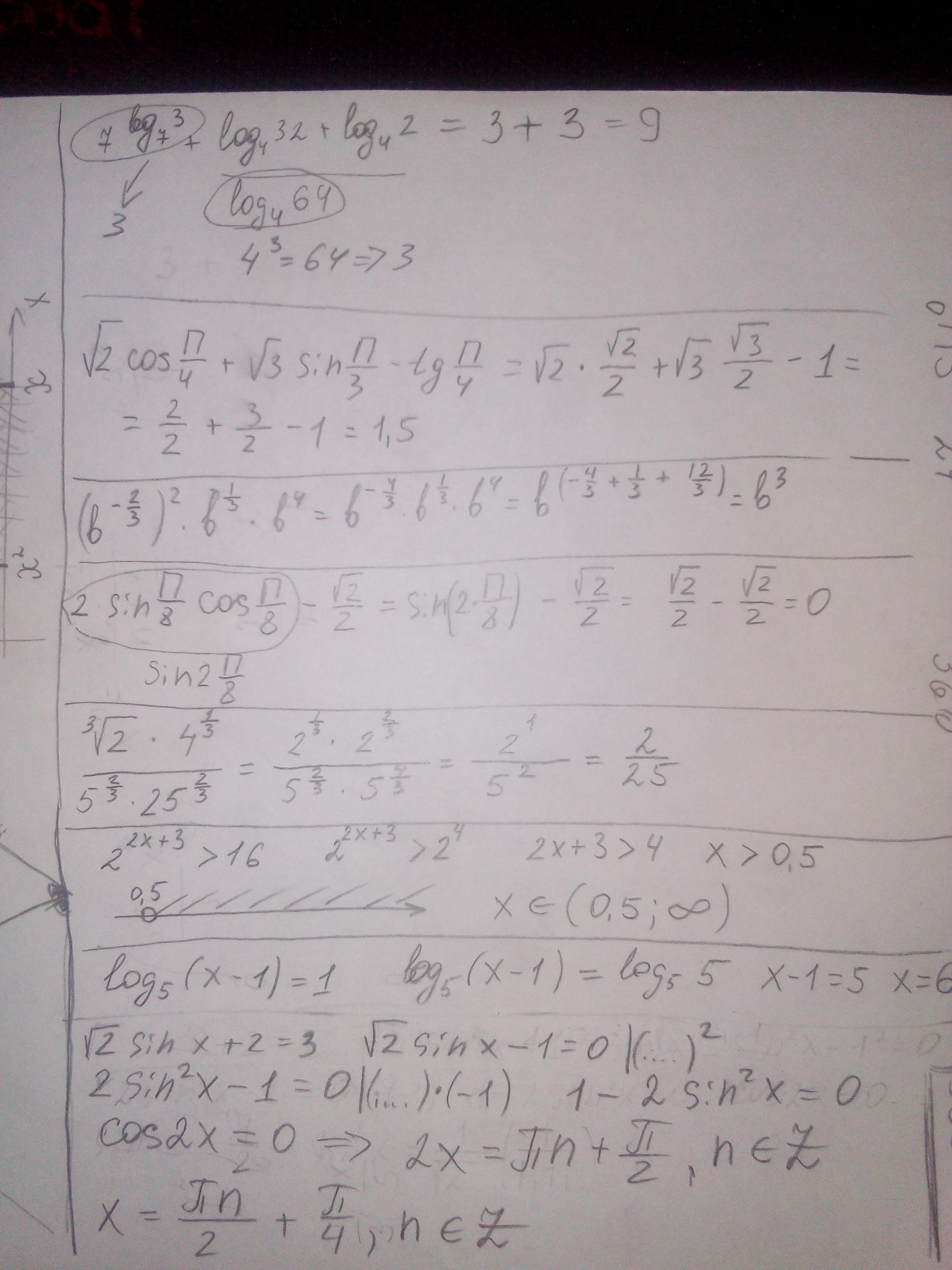 1б) √2 cos π/4 = √3sin π/3 - tg π/4= √2*√2/2 + √3* √3/2 -1=1+3/2-1=1,5.