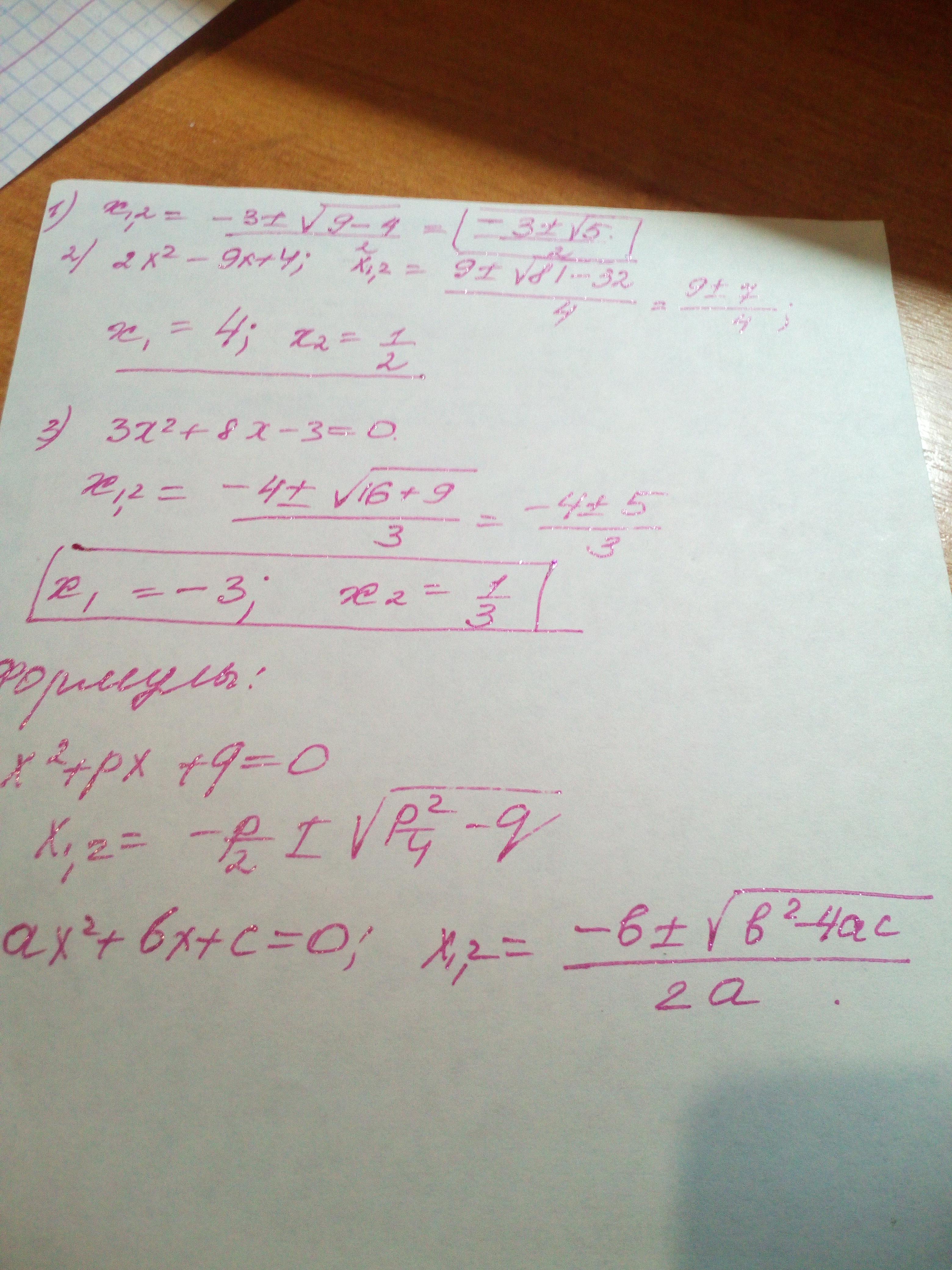3)3х²+8х-3=0