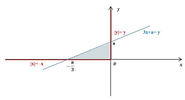 Фигура Ф на плоскости определяется системой: X + |X|=0, Y - |Y|=0, 3X + a ≥Y. Найдите все значения параметра a, при которых площадь фигуры Ф равна 5046.