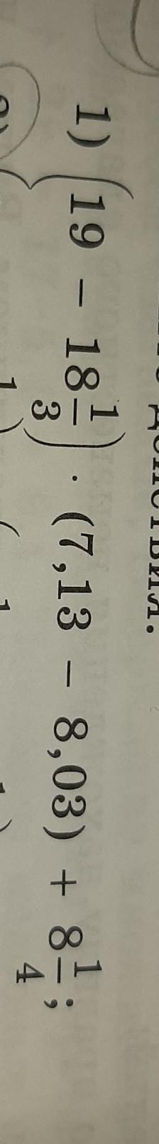 1) (19-18 1/3)*(7,13-8,03)+8 1/4=2/3*(-0,9)+8 1/4=-3/5+8 1/4=-12/20+8 5/20=7 13/20