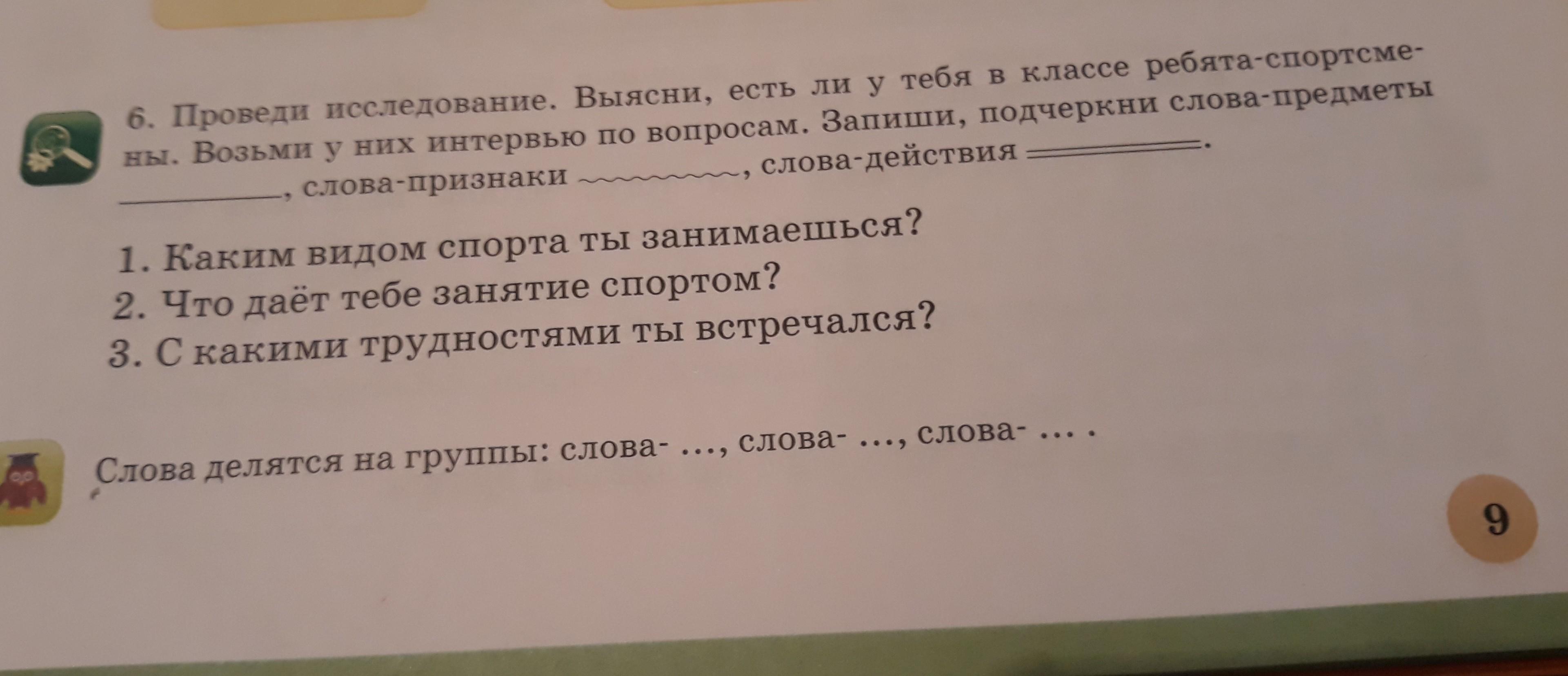 ны. Возьми у них интервью по вопросам. Запиши, подчеркни слова-предметы