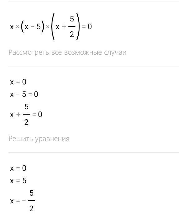 Приравниваем каждый каждый из множителей к нулю x=0,x=5,x=-2,5