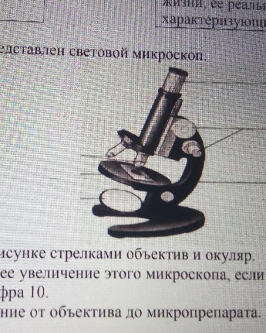 (а) Обозначьте на рисунке стрелками объектив и окуляр.