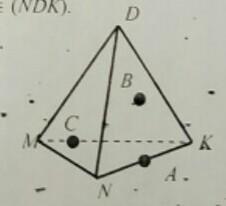 Постройте сечение тетраэдра плоскостью, проходящей через точки A, B и С, В принадлежит плоскости (NDK)