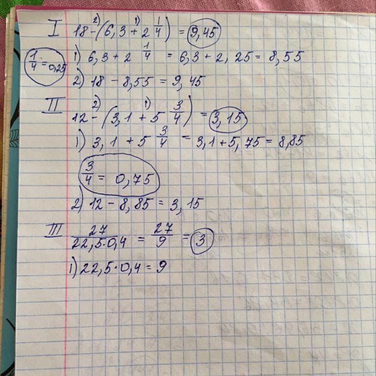 В 1 и 2 примерах решаем всё по действиям:сначала делаем действия в скобках, затем вычитание или сложение.