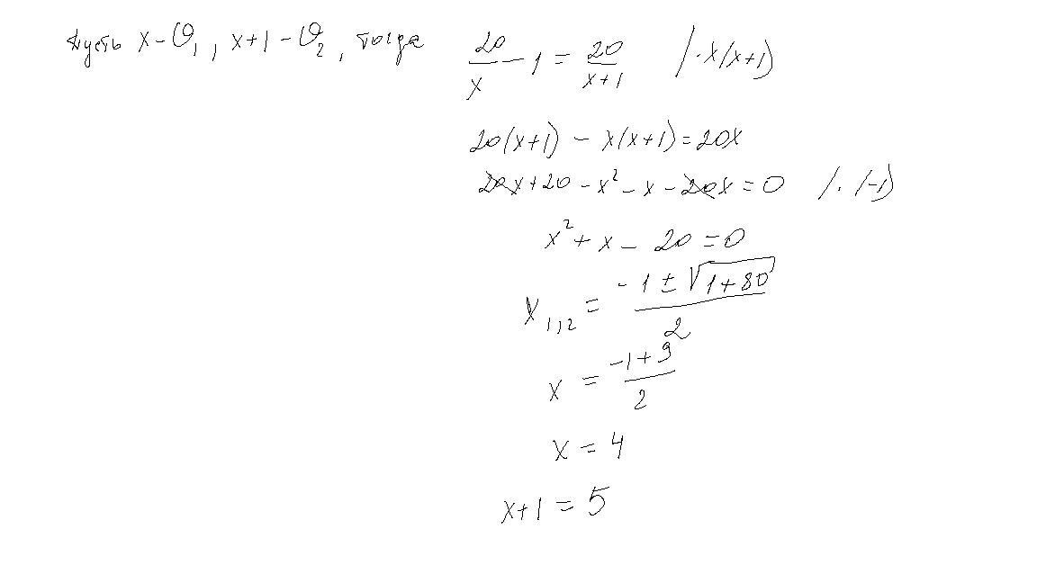 Из города А в город Б длина пути между которыми 20 км одновременно вышли два пешехода Скорость одного из них была на 1 км ч больше скорости другого поэтому он затратил на весь путь на 60 минут меньше Какова скорость каждого пешехода