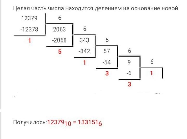 —›Таким будет 12379-е число в шестеричной записи, так как мы считаем с 0. Не забудем прибавить единицу, так как мы отнимаем ее из каждого разряда.
