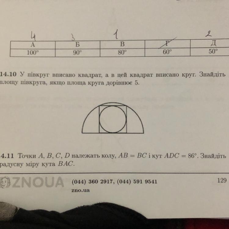 я провёл радиус из центра полукруга до вершины квадрата, дальше у нас получается прямоугольный треугольник, в котором один катет - это сторона квадрата, а другой - половина стороны, дальше по теореме Пифагора