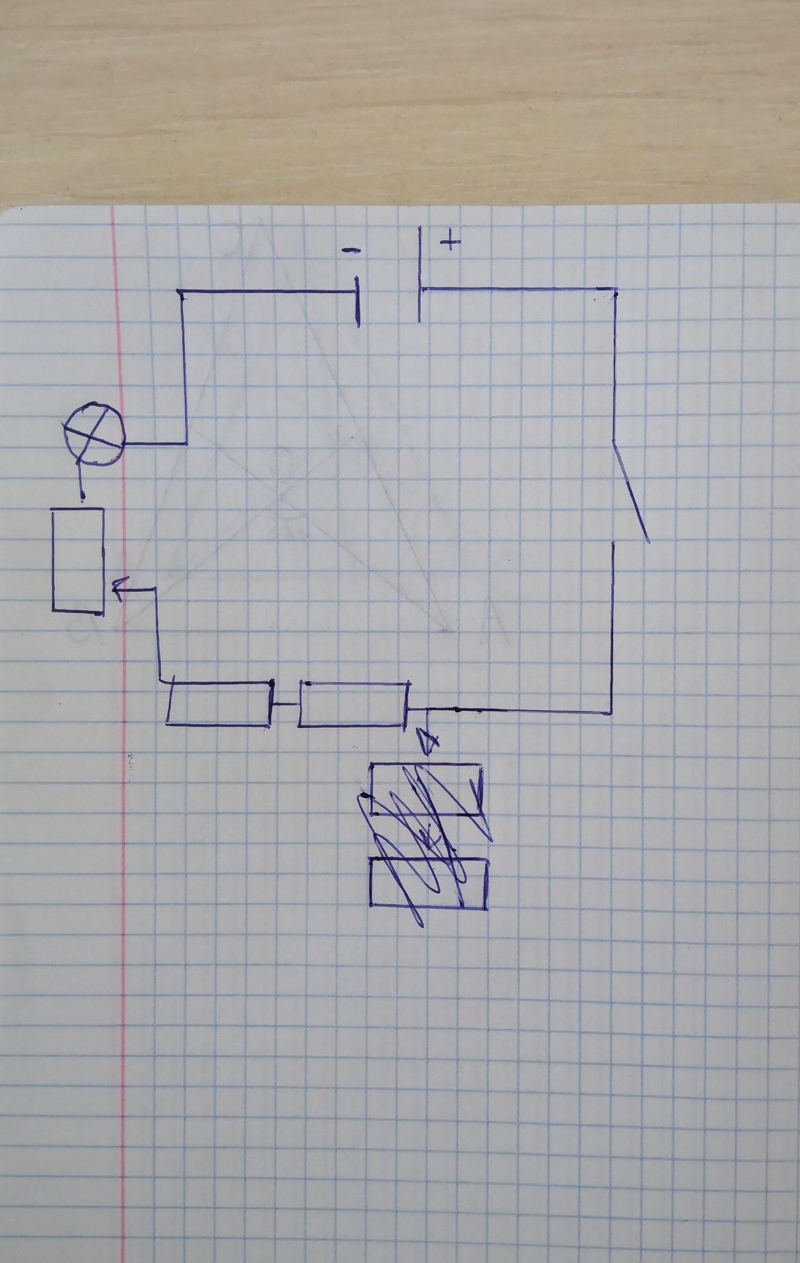 Составьте схему электрической цепи, состоящей из таких элементов как: аккумулятор, ключ, 2 резистора, реостат, лампочка.
