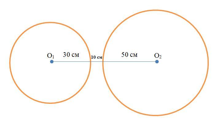 Имеет ли общую точку две окружности ,если их радиусы равны 30 см и 50 см ,а расстояние между их центрами 90 см