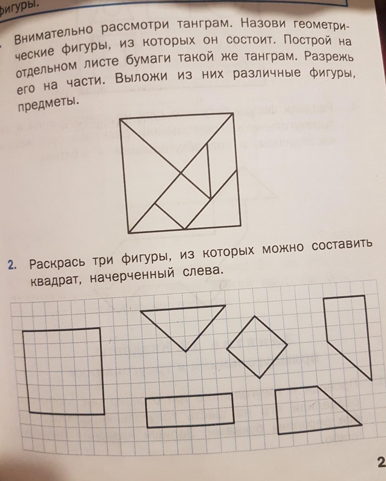 1Танграм состоит из треугольников, квадратов, и параллелограмов.