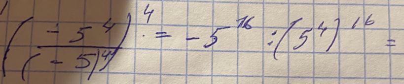 В числителе и знаменателе одно и то же число, отличия там только в знаке, так что в результате деления числителя на знаменатель получится -1, которое затем возводится в четвертую степень, давая единицу.