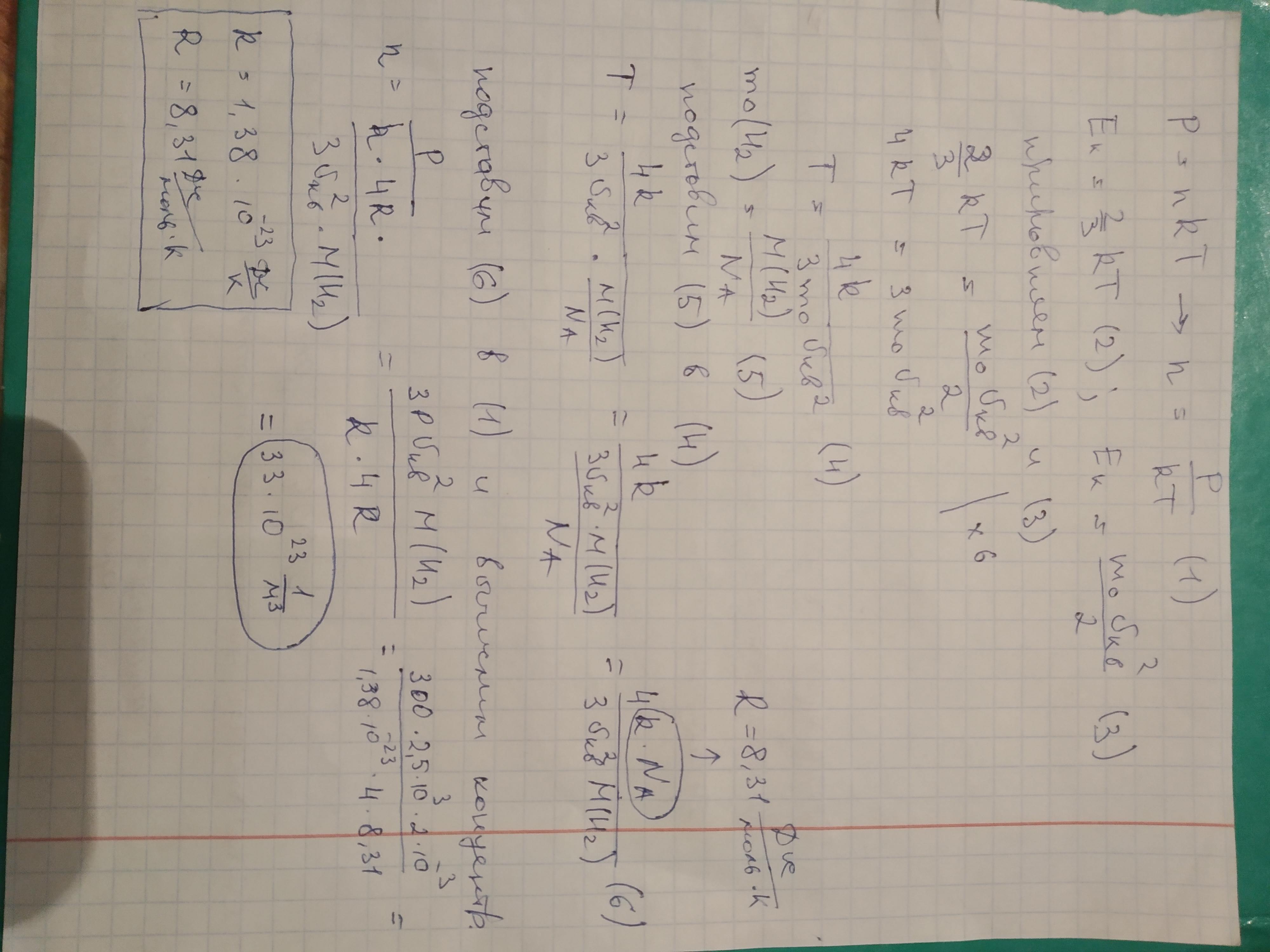 Найти концентрацию молекул водорода при давлении Р = 300 Па, если средняя квадратичная скорость его молекул vкв = 2,5*103 м/с.