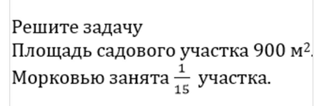 Нужно сначала разделить площадь участка на 15, а потом взять 1 часть.