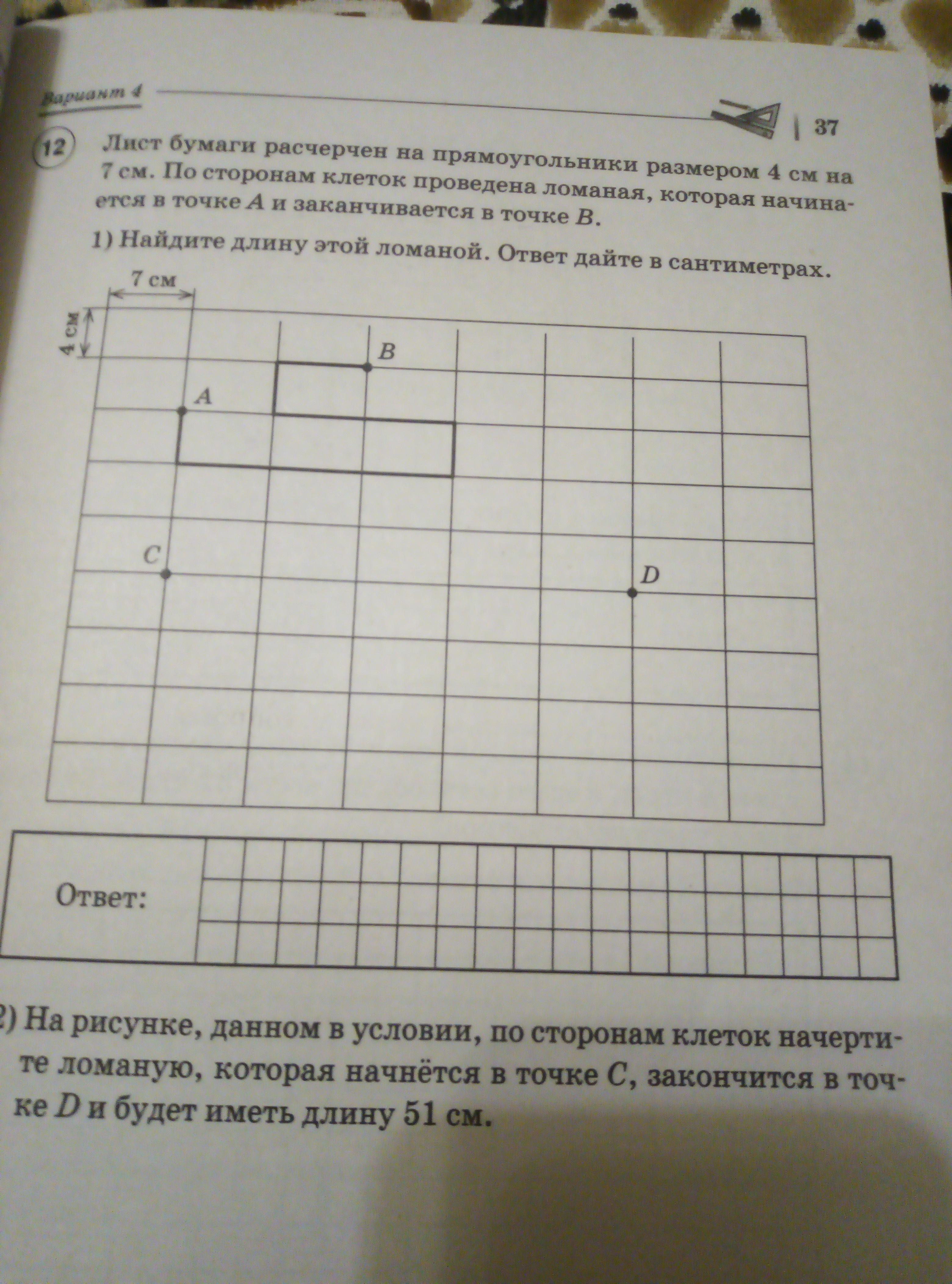 3 отрезка по 4 см и 6 отрезков по 7 см - получаем (3*4)+(6*7)=12+42=54 см