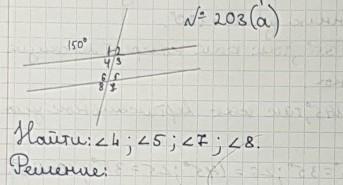 Ответ кут 4 = 150°. Кут 5 = 150°. Кут 7 =30°. Кут 8 = 150°