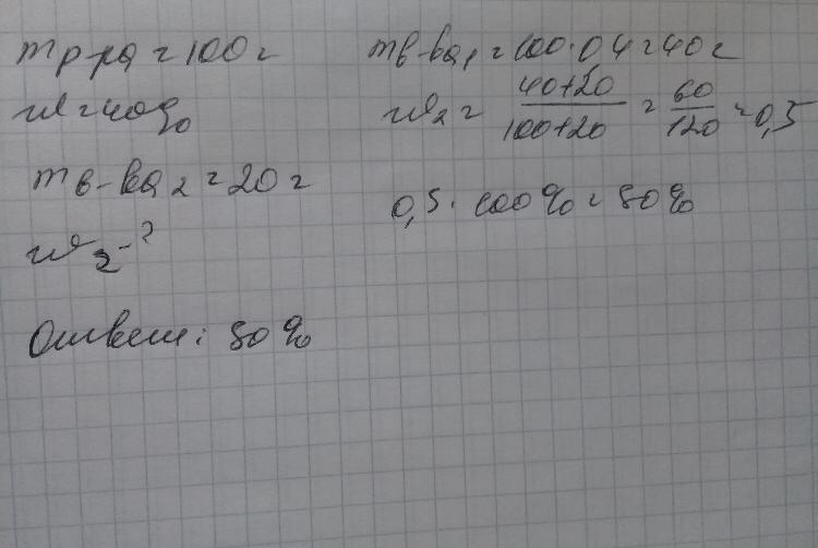 К 100 г раствора с массовой доли соли 40 % добавили 20 г сухой соли какова кастрация нового раствора