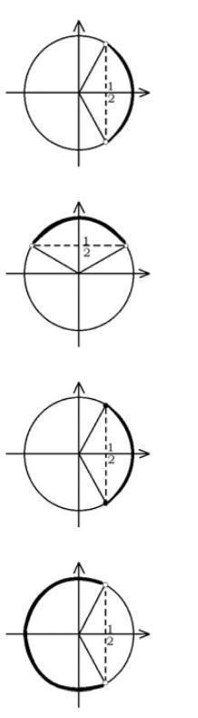 ( х>1/2 по Ох, у- значения косинуса изображены на окружности справа, крайние точки - выколоты)