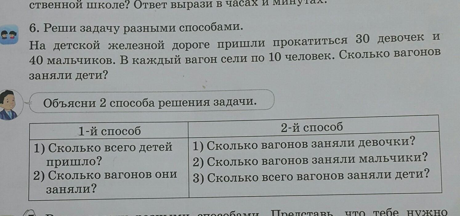 1)30 ÷ 10 = 3 (Вагона заняли девочки)