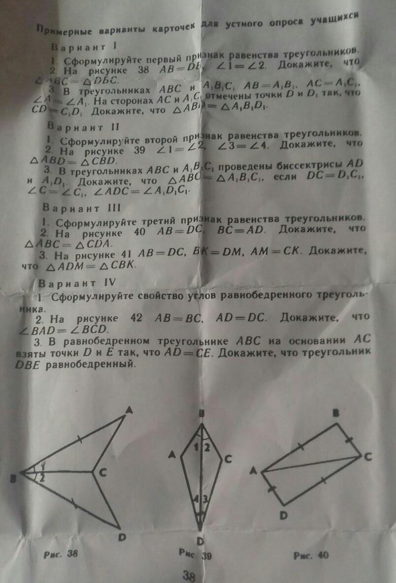 1 Если две стороны и угол между ними одного треугольника соответственно равны двум сторонам и углу между ними другого треугольника, то эти треугольники равны