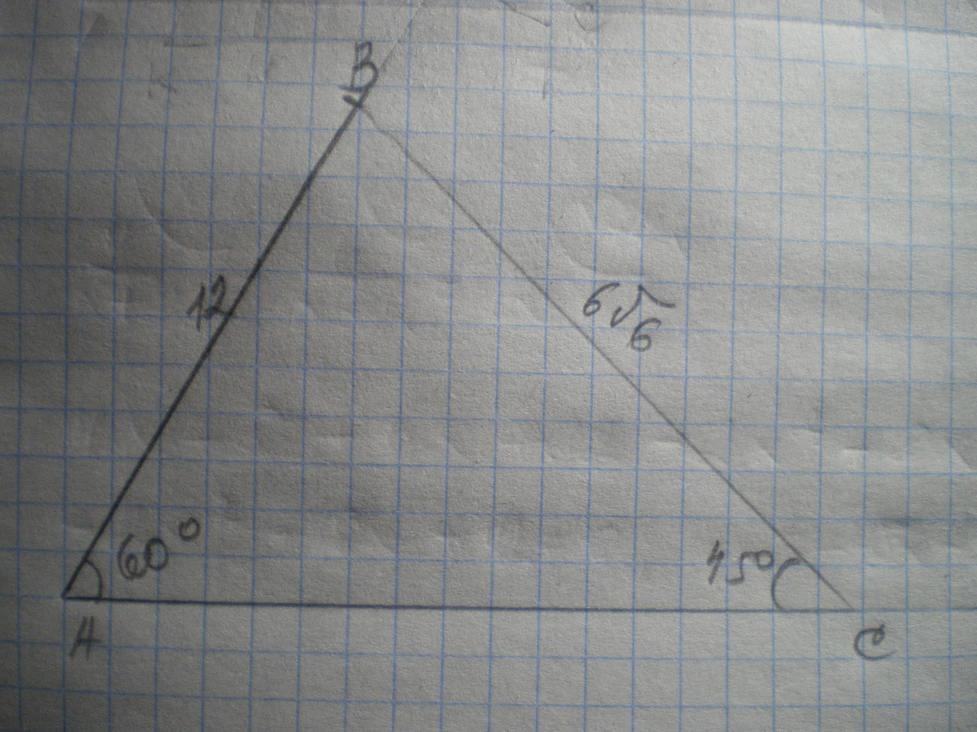 ВС=12*sin60:sin45=12*(√3/2):(1/√2)=6√6 см
