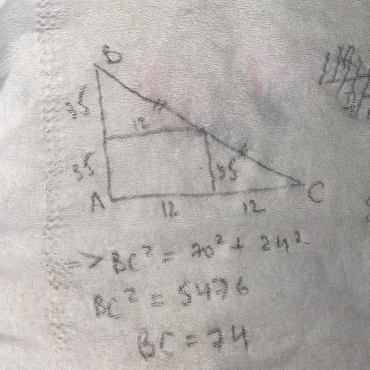 найти гипотенузу прямоугольного треугольника если расстояние от середины гипотенузы до катетов 12см и 35см