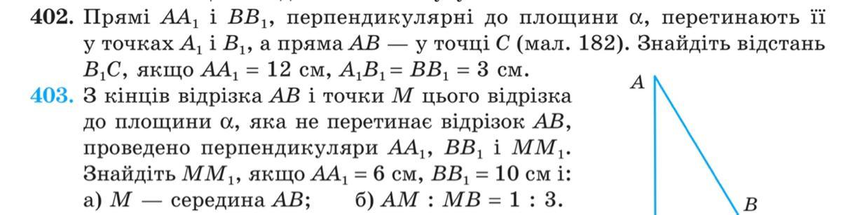 Ответ: №402. В₁C=1 см. №403. а)ММ₁=8 б) КК₁=7