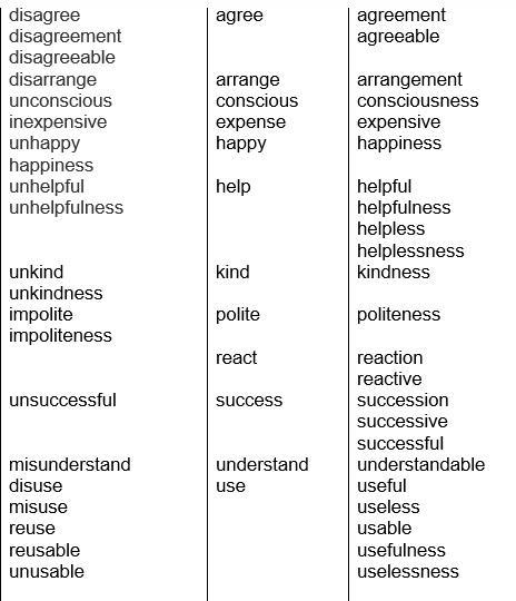 надо использовать только суффиксы и префиксы, которые указаны в таблице на картинке или другие тоже?
