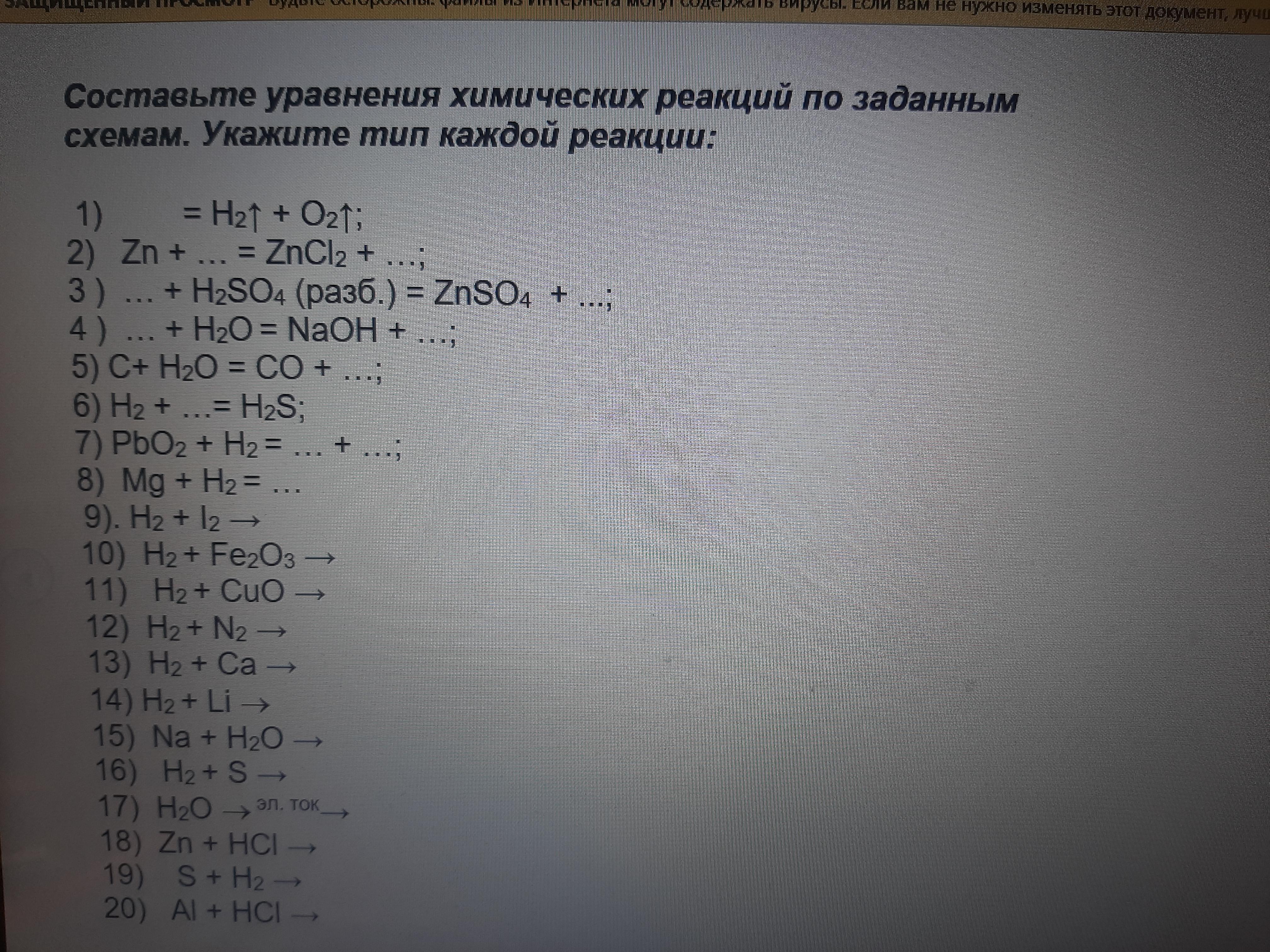 18)ZnCl2 + H^0(атомарный водород)
