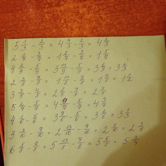 К примеру 5 1/3, переносишь к 1/3, 1 целую часть, у тебя получается 4 4/3 ,ты должен 4/3-2/3, и у тебя остаётся 4 2/3